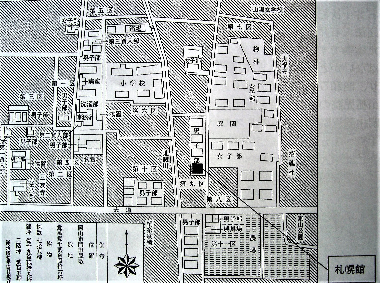 岡山孤児院家庭舎等配置図